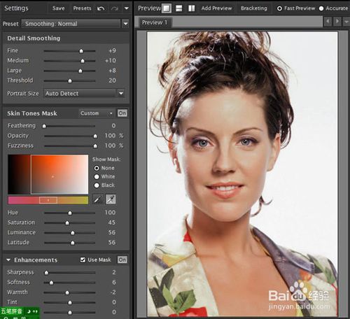 Portraiture是一款Photoshop,Lightroom和Aperture插件,可以消除冗長乏味的人工選擇性蒙板和逐像素處理,幫助您實(shí)現(xiàn)縱向修飾的卓越。它可以平滑和去除缺陷,同時保留皮膚紋理和其他重要的人像細(xì)節(jié),如頭發(fā),眉毛,睫毛等。Portraiture具有強(qiáng)大的蒙板工具,僅在圖像的膚色區(qū)域中進(jìn)行選擇性平滑。什么使Portraiture的蒙板工具真正獨(dú)一無二的是其內(nèi)置的自動蒙板功能。它可以幫助您快速發(fā)現(xiàn)圖像的大部分皮膚色調(diào)范圍,如果需要,您可以手動微調(diào),以確保最佳效果,提供無與倫比的精度和活力。 為了更精細(xì)的控制,您可以指定不同細(xì)節(jié)尺寸的平滑度,并調(diào)整銳度,柔軟度,冷暖度,亮度和對比度。
