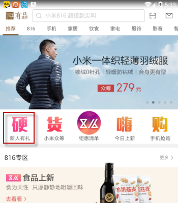登陸后進(jìn)入主界面,如果是新用戶的話可以點(diǎn)擊新人有禮這一欄,進(jìn)去后里面會(huì)贈(zèng)送一些優(yōu)惠券給你,非常實(shí)惠,讓你購物時(shí)可以抵部分現(xiàn)金。