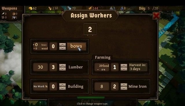 2,木頭:通過分配工作獲得,主要用來打造武器和建造房屋。
