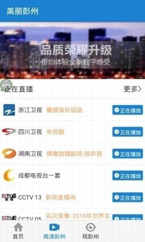 美麗彭州app做服務(wù)彭州的全方位融合平臺,美麗彭州app集社交,互動,資訊、服務(wù)于一體的移動互聯(lián)網(wǎng)互動平臺,包含新聞服務(wù)、便民生活、彭州美食旅游、智慧社區(qū)、高清直播(電視直播和節(jié)目單)、城市VR、景區(qū)監(jiān)控等!