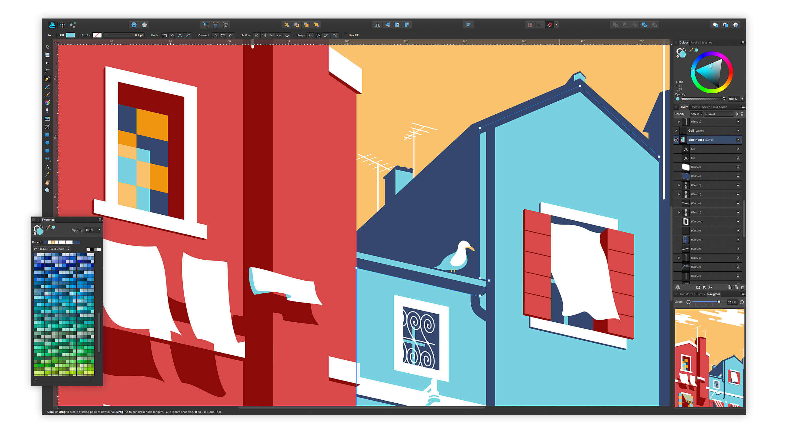 精心設(shè)計(jì)的鋼筆工具巧妙地涵蓋了制作曲線(xiàn)的基本原理,并結(jié)合直觀的修飾工具,這是您創(chuàng)作的主力。切換到節(jié)點(diǎn)或?qū)崟r(shí)邊角工具允許您重新雕刻、打磨并調(diào)整到完美。