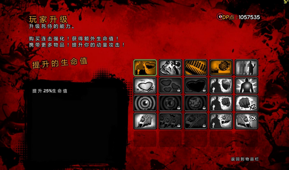 最后就是玩家升級,這里也不推薦花費很多的點,都是輔助性的升級,最多加第一個生命值上限,還有武器彈藥的升級即可,動量的升級由于不好掌握,我是放棄了。