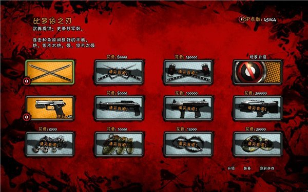 鋼叉,我只升級了三個點:傷害、流血和擊殺獎勵,其實如果完全不升級的話也對進程影響不大,這武器我覺得就是一個雞肋般的存在,當然你偏愛這武器的話,最好多多花一些點放在流血上,其他功能不升級也罷。
