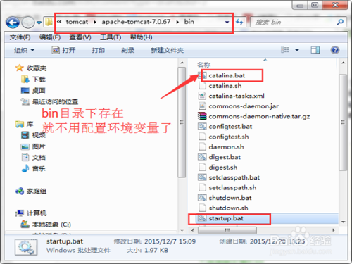 以前的版本都需要配置環(huán)境變量。不過貌似tomcat7.0后都不需要配置了(反正現(xiàn)在安裝7.0的解壓版和安裝版都不需要配置環(huán)境變量都成功了),用EditPlus打開bin目錄下的startup.bat,可以看到如下原因 if exist "%CATALINA_HOME%\bin\catalina.bat" goto okHome 意思是bin目錄下存在catalina.bat文件就可以訪問tomcat頁面了,代表著安裝成功了。
