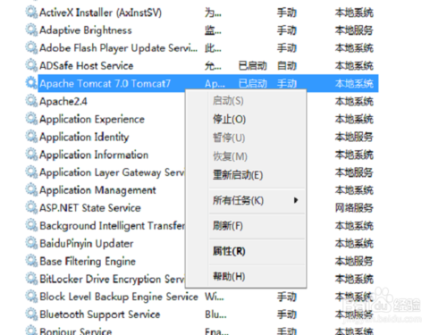 安裝版有3種啟動服務(wù)的方法。一是打開bin目錄下的Tomcat7w.exe;二是計算機——>管理——>服務(wù)(管理tomcat的服務(wù));三是通過任務(wù)欄上的tomcat啟動圖標(biāo)管理tomcat的啟動和暫停(當(dāng)然Myeclipse那種另外講)。解壓版只有通過bin下的startup.bat或者doc命令。這可以算是安裝版的好處吧。