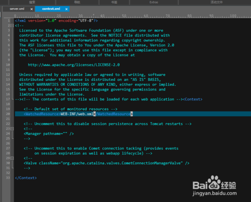 首先我們看一下context.xml。context.xml是在tomcat 5.5之后引入的配置文件,配置在context.xml里面的項目是tomcat server級別的,context.xml里面配置的項目如果發(fā)生了變動,不需要重啟tomcat,會動態(tài)的重新加載項目,配置詳解: