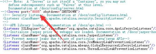 下面我們看一下server.xml。server.xml是tomcat的核心配置文件,里面配置容器的各種包含關(guān)系,以及路徑等。首先我們看到配置文件中配置了一系列的listner