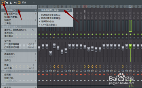 點開調(diào)音臺左上角的三角形,如下圖,選中磁盤錄制,在選擇錄制成波性文件