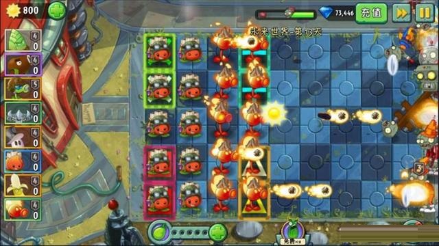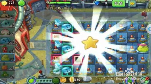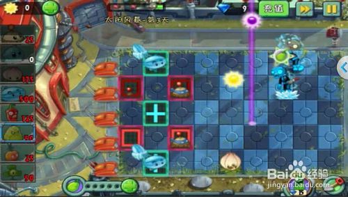 2、植物大戰(zhàn)僵尸2未來(lái)世界太陽(yáng)風(fēng)暴第3天獲星過(guò)關(guān)攻略等待陽(yáng)光變?yōu)檎嬲年?yáng)光后再收集。