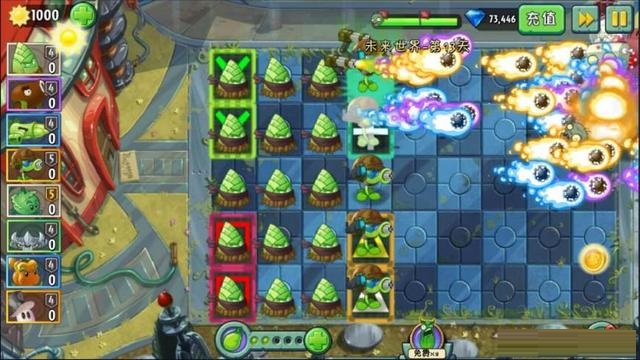 3、植物大戰(zhàn)僵尸2未來(lái)世界太陽(yáng)風(fēng)暴第3天獲星過(guò)關(guān)攻略種植冰西瓜投手。埋置地雷。