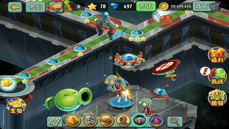 《植物大戰(zhàn)僵尸2未來(lái)世界》是由上海寶開(kāi)游戲制作的塔防手機(jī)游戲,于2014年7月發(fā)售。版本中共新增了30個(gè)創(chuàng)意十足的主線(xiàn)關(guān)卡,以及極具中國(guó)特色的三個(gè)支線(xiàn)玩法,當(dāng)然,這也是只有中國(guó)版才能夠體驗(yàn)到的玩法。與此同時(shí),機(jī)器蟲(chóng)小鬼僵尸、電磁盾僵尸與迪斯科僵尸等強(qiáng)力敵人全面升級(jí),未來(lái)世界的時(shí)空大戰(zhàn)一觸即發(fā)。