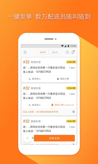 Q:商家如何發(fā)布訂單?點(diǎn)我達(dá)APP支持商家一鍵發(fā)單,僅需一步操作就可以發(fā)布訂單。