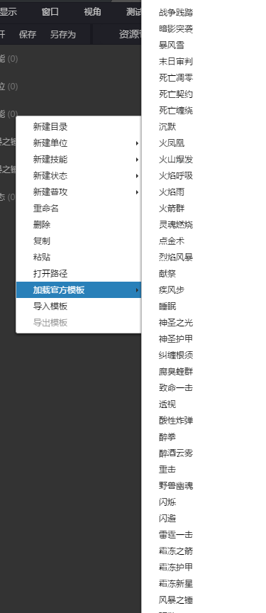 但官方還是提供了一部分沿襲自WE的模板技能,通過加載官方模板來獲得一些已經(jīng)存在的邏輯技能,放置到單位的技能列表中就可以使用了。數(shù)量上依然不能和WE相比,這一點兒對于WE來說是難度更高的地方。