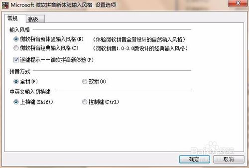 切換到微軟拼音輸入法,單擊語(yǔ)言欄 上的“功能菜單” 按鈕,在彈出的功能菜單上選擇“輸入選項(xiàng)…”,會(huì)彈出“微軟拼音輸入法輸入選項(xiàng)”對(duì)話框,單擊選擇“常規(guī)”選項(xiàng)卡,在輸入風(fēng)格上可選擇新體驗(yàn)或經(jīng)典輸入風(fēng)格,拼音方式選擇全拼或雙拼。