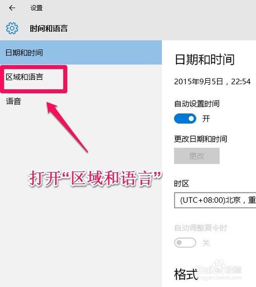 打開(kāi)“區(qū)域和語(yǔ)言”