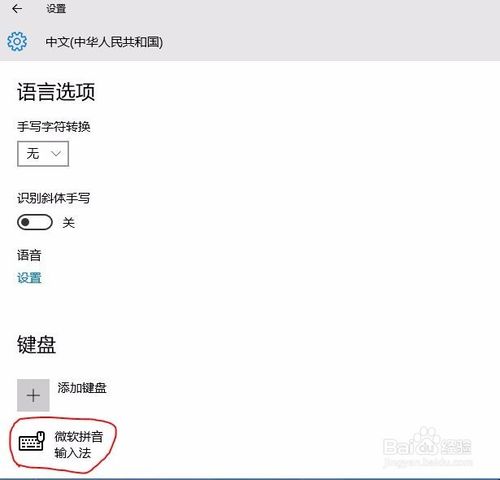 在中文設(shè)置里,可以在鍵盤(pán)下看到已經(jīng)被添加的微軟拼音輸入法。