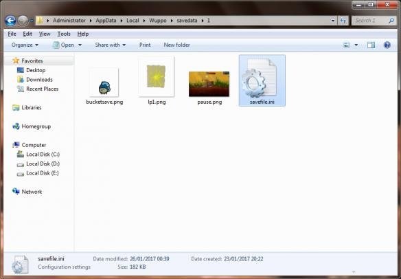 這時(shí)如果已有游玩存檔,C:\Users\Administrator\AppData\Local\Wuppo\savedata\1\savefile.ini就是存檔文件的位置,我們雙擊打開(kāi)它(打開(kāi)方式用記事本)。