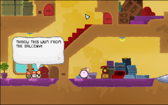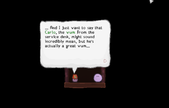 這塊劇情挺復(fù)雜的,也給全篇定了個(gè)伏筆。這個(gè)世界上有四種生物,wum,blusser,splenkhakker和Fnakker,各有所長(zhǎng)。然而因?yàn)榉N族歧視另外三族(主要是wum)合謀把fnakker扔進(jìn)了一個(gè)沼澤大坑里,世界又恢復(fù)了和平...