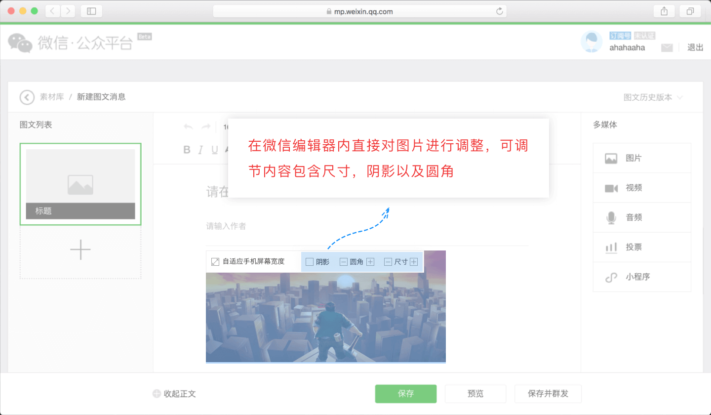 支持在微信公眾號(hào)后臺(tái)對圖片進(jìn)行簡單的編輯