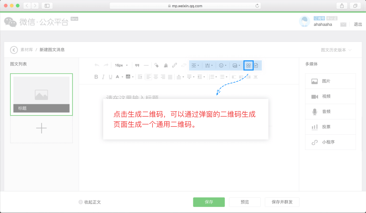 支持在微信公眾號(hào)直接制作二維碼