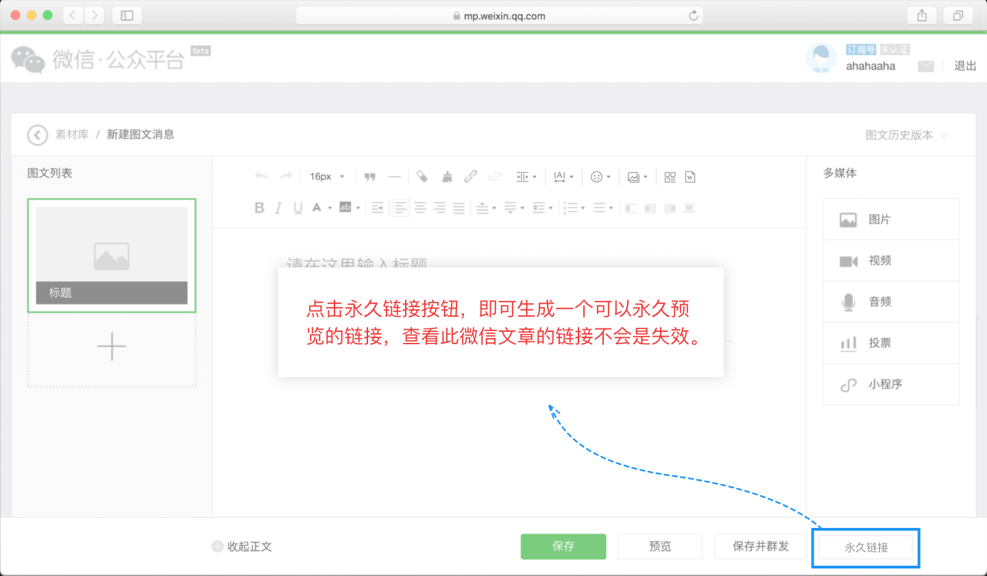 一鍵生成永久預(yù)覽鏈接,免除修改文章后反復(fù)生成鏈接