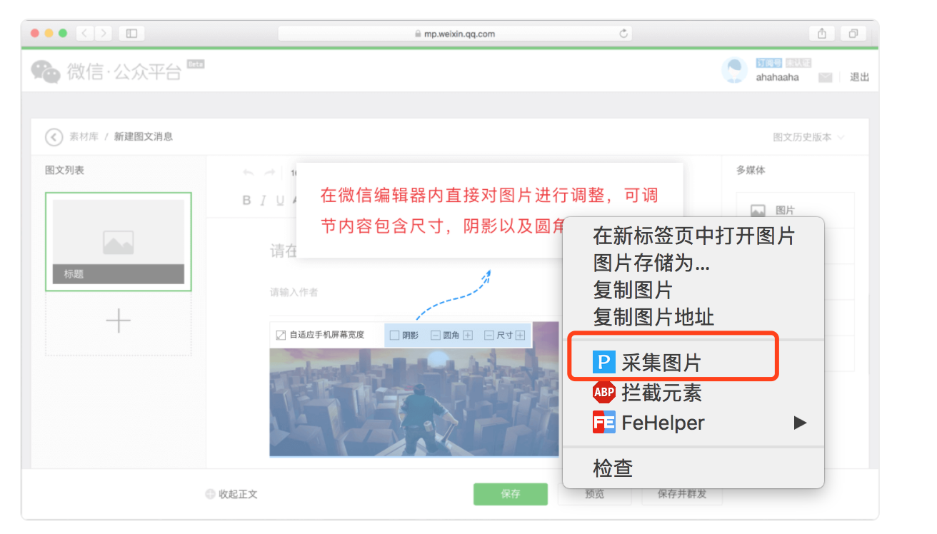 如何使用新媒體管家插件采集圖片?