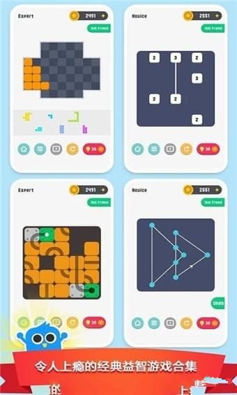 謎題達(dá)人是一款令人上癮的經(jīng)典益智游戲合集,超過(guò)2000關(guān)的專業(yè)的關(guān)卡設(shè)計(jì),簡(jiǎn)單有趣。謎題達(dá)人游戲包括連線、拼圖、七巧板、逃脫、滾球、接水管、一筆劃、數(shù)字連線等經(jīng)典益智游戲在內(nèi),您只需要安裝謎題達(dá)人便可享受到史上最經(jīng)典以及當(dāng)下最流行的益智游戲。