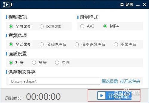 啟動軟件后,設(shè)置視頻、音頻、格式、畫質(zhì)等,就可以開始進行錄制了。