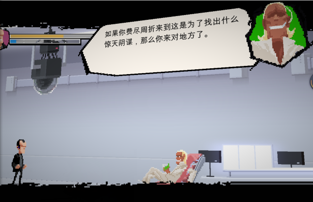 殺掉博士后我們來到了最終boss的地方,前面小怪特別多(多的爆炸!沒有手柄的同學可能要按得手疼),我建議大家選擇一些能夠范圍攻擊的英雄,我們一路披荊斬棘來到了幕后黑手的辦公室,這個穿白衣服 就是幕后的黑手,他的血特別厚,而且血量到底之后會爆氣,我們應該小心應對。