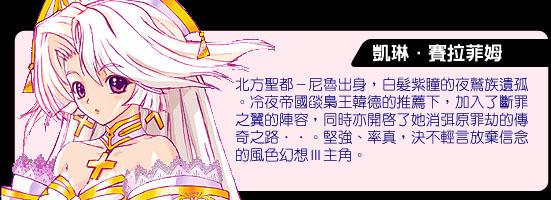 救世主加瑟多用遠古時代邪神迪斯雅所使用的七枚原罪徽章封印了亂世的六大圣靈,同時亦結束了人類與妖精之間,長達近百年的戰(zhàn)爭……但畢竟是與代表著自然的妖精為敵,就算是人定勝天的堅持獲得了最后勝利,那忤逆自然的罪所帶來的罰,亦將不滅的存在。就在加瑟多因封印六圣靈而力盡逝去后,不再受制于救世主掌控的七大原罪徽章終于爭脫咒語的束縛四散于天際……好爭擅斗的人類世界第一次有了共識,為了因應這注定來到的七原罪之劫、為了抵御這必將成真的滅世災難,就在北帝國與南方聯(lián)合公國-圣焰的促成下,精靈戰(zhàn)爭的英雄-圣焰王辛格爾德正式在全人類世界的期盼中,成立了集合中土世界精英、專門為消弭七原罪之劫而存在的精英組織--“斷罪之翼”,并揚言這集合了各國頂尖菁英、隨時保持頂尖戰(zhàn)力的集團將取代已遠去的救世主加瑟多,代替人類世界斬斷因果所帶來的罪與罰,爭取完美無暇的和平盛世?。〈箨憵v189年,距離精靈戰(zhàn)爭的結束已過了92年的時光。在這近百年的歲月里,北帝國--“冷夜”的掘起、聯(lián)合公國--“圣焰”中貴與貧的內戰(zhàn),皆在顯示著人類世界的互動并未因注定到來的劫難而停止……當然,對“斷罪之翼”這組織而言,不斷訓練培育著各國前來的新血也未有一刻止歇……就在這一年初秋,北帝國“冷夜”的圣都尼魯,一名白發(fā)少女--凱琳通過了災厄殿的考驗,順利成為圣都尼魯進入“斷罪之翼”組織的代表。同時,曾于圣焰內戰(zhàn)中有著優(yōu)異表現(xiàn)、甚至以20歲之齡即獲得“修羅將軍”稱號的圣亞里昂公子--西撒·赤紅亦也在圣焰王的推薦中進入“斷罪之翼”的殿堂。究竟這兩個人的相遇,會為“斷罪之翼”帶來什么樣的改變??蟄伏于歷史之影中的七原罪徽章又是否會如預期般的覺醒,并帶來預言中的毀滅神罰??而當這一切已預言即將到來的劫難都已消弭,“斷罪之翼”里來自于各國,經(jīng)過了絕望與希望的洗煉而已經(jīng)有著深厚感情的男女們,又將如何面對所屬國家間,因共同目的的消失而逐漸對立爭戰(zhàn)的窘境?。匡L色幻想Ⅲ,將為您忠實呈現(xiàn)這壯大動人的大時代故事……