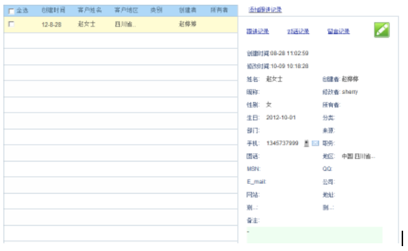 跟進記錄:對指定客戶的跟進聯(lián)系的一些記錄信息。 (例如在銷售中得到了銷售線索(此