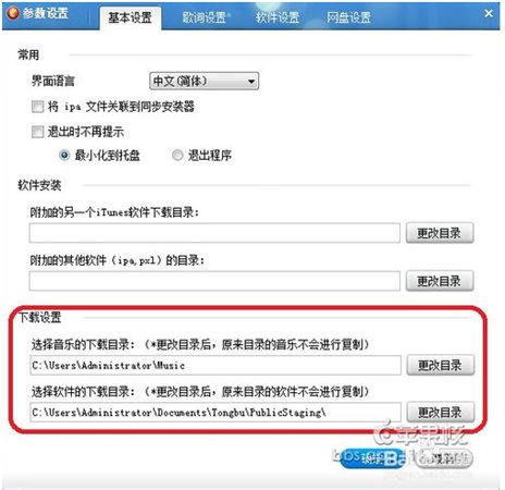 4、我們可以在同步助手設(shè)置當中對下載的軟件位置等信息進行設(shè)置,以便我們更好的操作。
