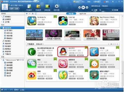 4、將設(shè)備連接電腦后,我們可以看到“同步軟件”,在這里面,大家可以看到可以下載的有很多,大家可以通過搜索來尋找自己所想要的軟件,所要注意的就是要選擇符合您設(shè)備軟件。