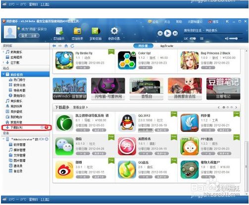 5、在“同步軟件”中找到您需要下載的軟件應用,點擊“下載”或“高速下載”,這時可以看到“下載隊列”中有一個項目正在下載