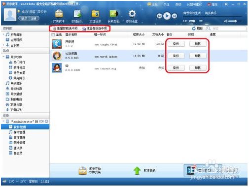 8、安裝好后,大家可以在“設(shè)備”中的“軟件管理”并點擊下方”已安裝軟件“看到所有安裝好程序列表,在這里大家可以做兩個工作,一個是備份,還有一個是卸載。