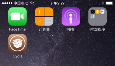 4.越獄成功后,在設(shè)備能運行cydia,等待數(shù)據(jù)加載完畢。