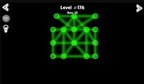 界面華麗的連線游戲,幾百個(gè)關(guān)卡,不但要要看你的邏輯能力,還要考驗(yàn)?zāi)愕耐评砗团袛嗄芰?。游戲?guī)則是在最短的時(shí)間內(nèi)按照指定的圖形把每個(gè)點(diǎn)都用線條連起來(lái),而且每條線只能用一次,不能跨點(diǎn),也不能疏漏,當(dāng)你完成的時(shí)候游戲會(huì)根據(jù)你所用的時(shí)間給你一個(gè)最恰當(dāng)?shù)脑u(píng)價(jià)。