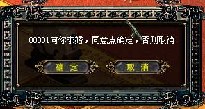 五、玩家所求婚的對(duì)象得一個(gè)窗口提示請(qǐng)求,詢問(wèn)對(duì)方是否同意,如果同意就點(diǎn):確定,不愿意就取消。