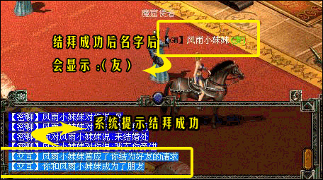 三、當(dāng)結(jié)拜成功后,在好友的名字后會(huì)有:(友)的字眼,表示對(duì)方是玩家的好友。