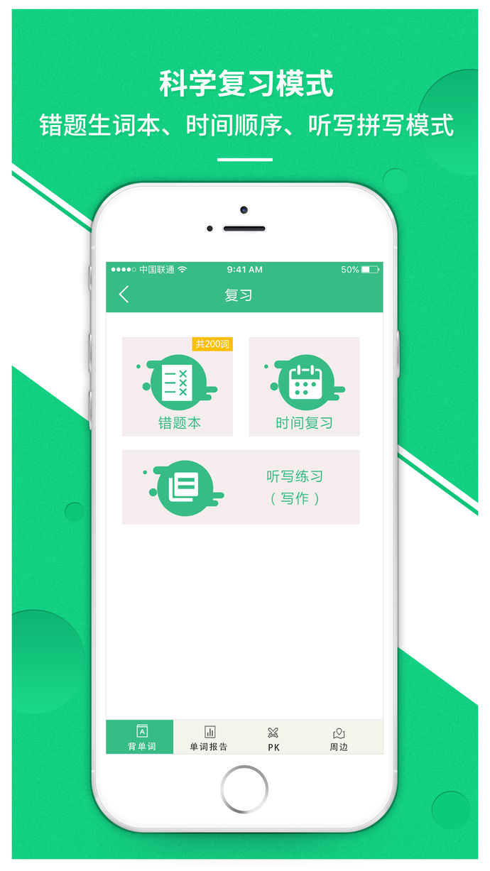 4、科學復習模式:錯題生詞本、時間順序、聽寫拼寫模式