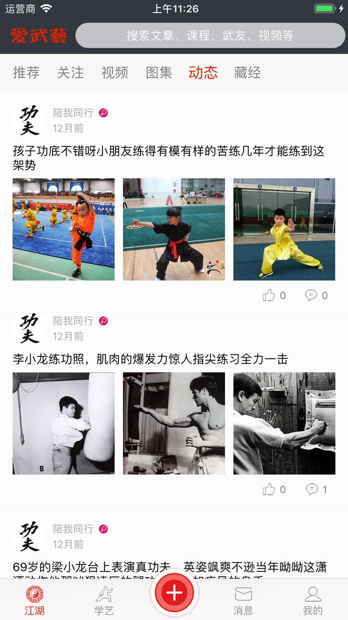 用戶可以一站式閱讀到最新的武術(shù)資訊、視頻,也可以發(fā)表自己的練功感想、體會。并有機會跟全球的武友、名家進行學(xué)習(xí)、交流,從而開闊自己的眼界,提高自己的技藝。同時,我們還提供武術(shù)教程,您足不出門,就可以學(xué)到大師們的最精妙的功夫。