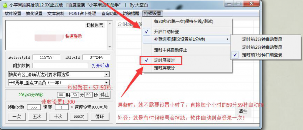 選擇定時前1分鐘自動登錄,則屏蔽時,不需要設(shè)置小時了,直接每個小時的59分59秒自動登錄