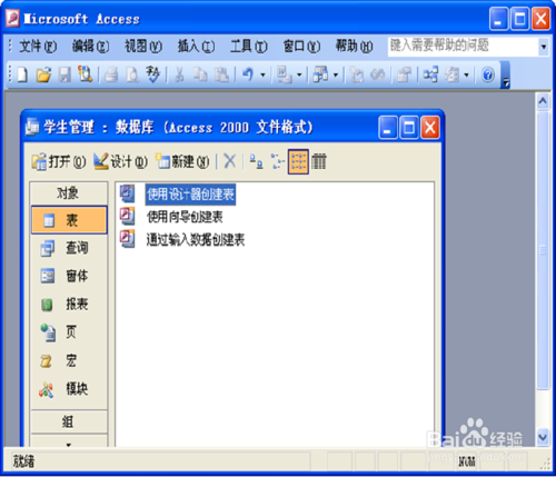 至此,我們就新建好一個(gè)Access數(shù)據(jù)庫了,然后就可以U對(duì)我們新建的數(shù)據(jù)庫進(jìn)行管理操作了?。?!