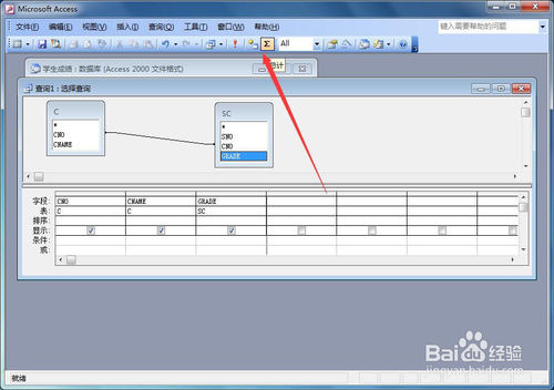 要?jiǎng)?chuàng)建總計(jì)查詢,我們要單擊工具欄的“總計(jì)”按鈕,如圖所示。