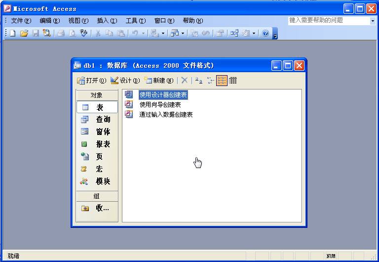 接下來我們可以看一下我們剛剛新建的Access數(shù)據(jù)庫窗口;里面有對(duì)象,表,查詢,窗體,報(bào)表等;如圖所示;