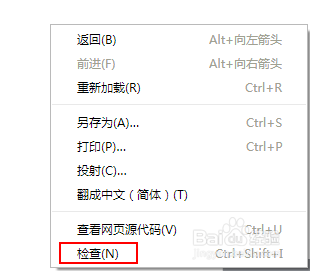 我們在瀏覽器打開后的空白處,記住隨便的空白頁面處點擊右鍵,然后選擇“檢查”;