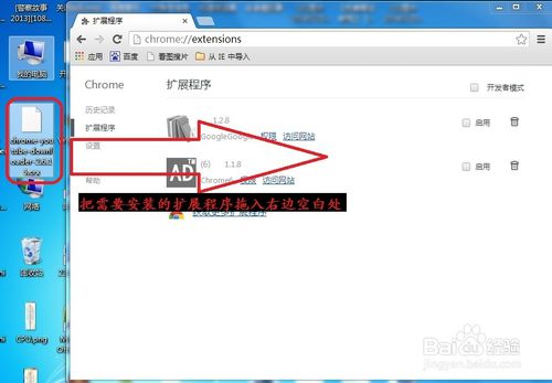 把想要安裝的文件(.crx后綴)拖入右邊空白處。