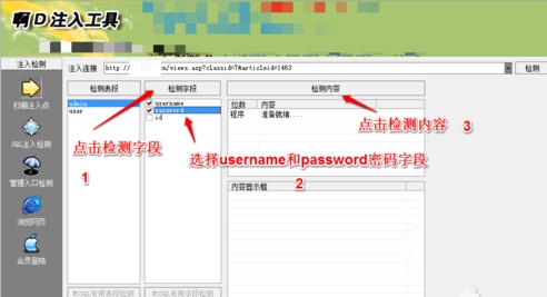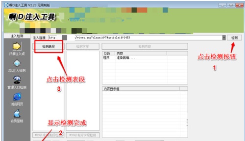 6、進入注入檢測頁面,直接點擊“檢測”按鈕,