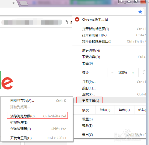 單擊Chrome瀏覽器的菜單圖標,彈出如下截圖1所示的對話框,在對話框中將鼠標移到“更多工具”后,會出現(xiàn)圖2 所示的對話框。
