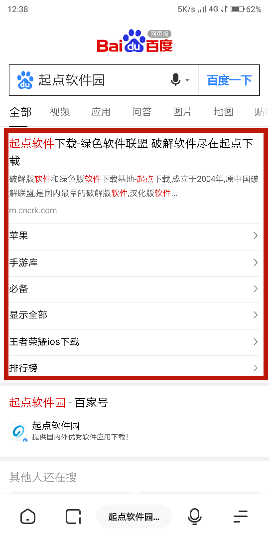 1.打開手機(jī)瀏覽器,搜索起點軟件園,點擊第一個進(jìn)入起點